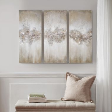 Madison Park Luminous Hand Painted 35 Inch X 15 Inch Wall Art Set In Taupe Set Of 3 Bed Bath Beyond