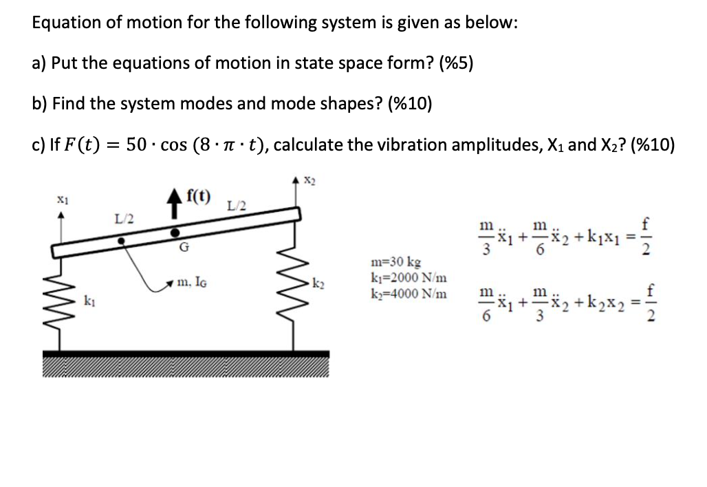 Solved Equation Of Motion For The Following System Is Given Chegg Com