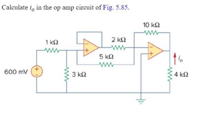 Solved Calculate I In The Op Amp Circuit Of Fig 5 85 Chegg Com